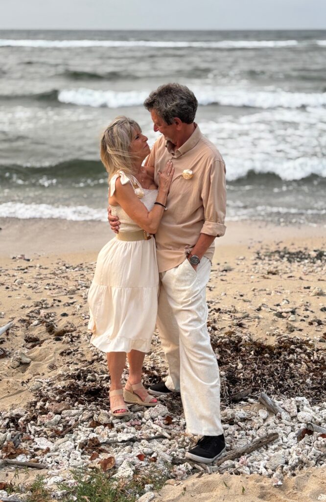 Ann and John at their 30th anniversary wedding vow renewal ceremony on a beach in St. Croix, U.S.V.I.