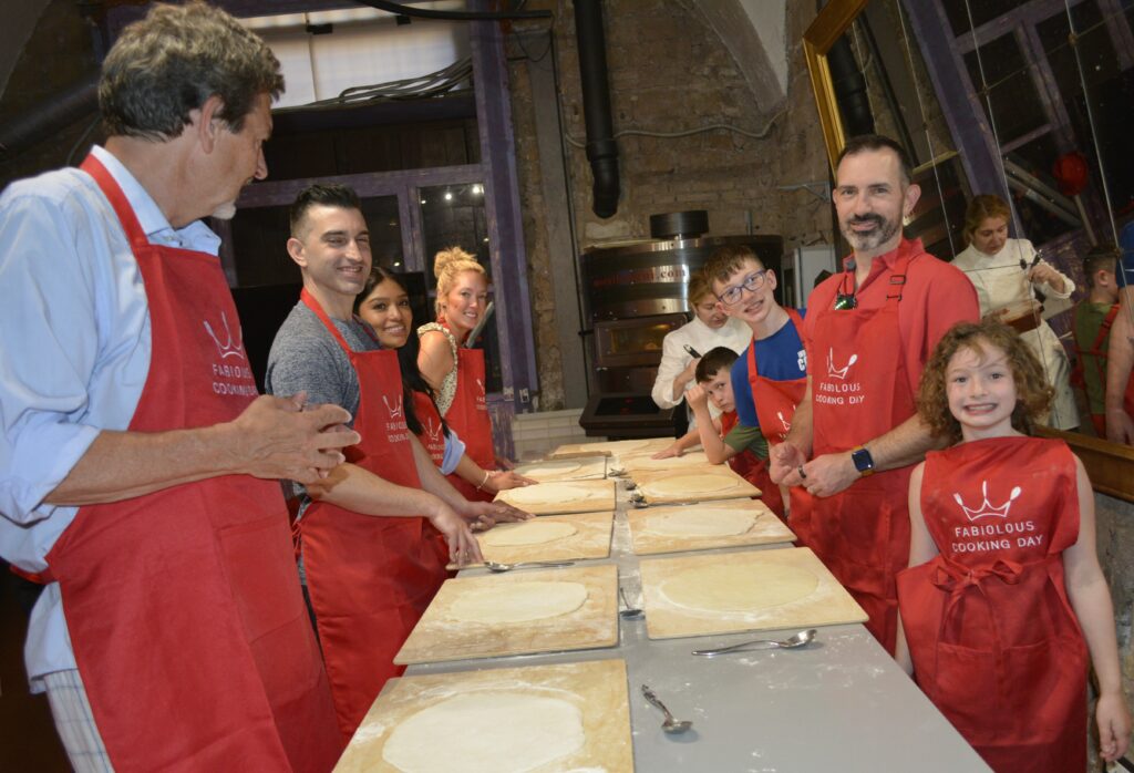 The family pizza-making class on our first night in Rome.