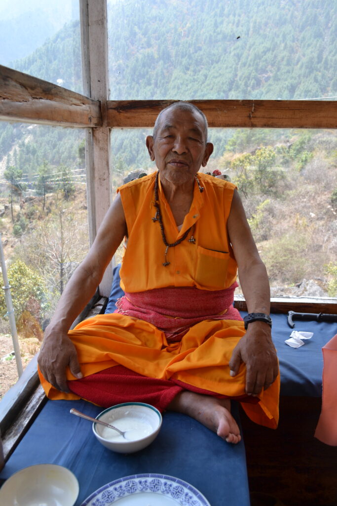 The local lama and his lunch in a small village in the Himalayas.