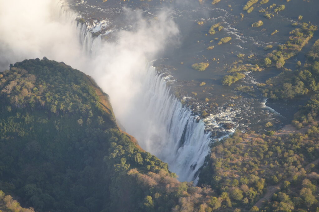 An aerial view of Victoria Falls in Zambia.