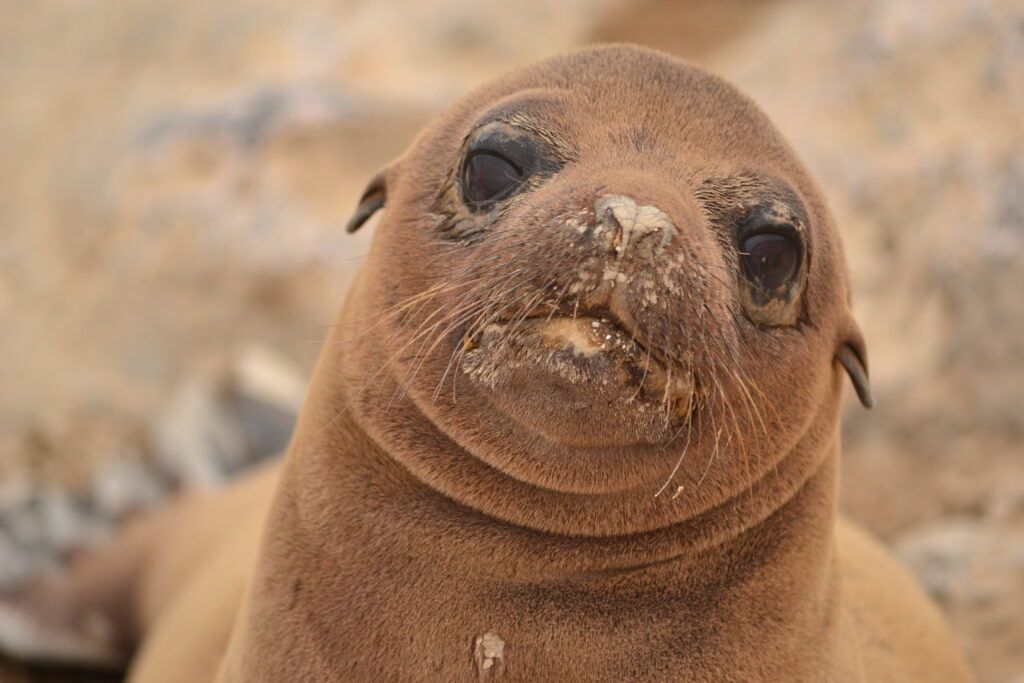 Going face-to-face with a baby sea lion in the Galapagos Islands.