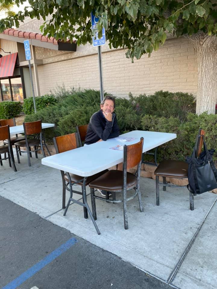 The Denny's in Barstow set up al fresco dining in their parking lot to circumvent California's no-inside-dining COVID rules.