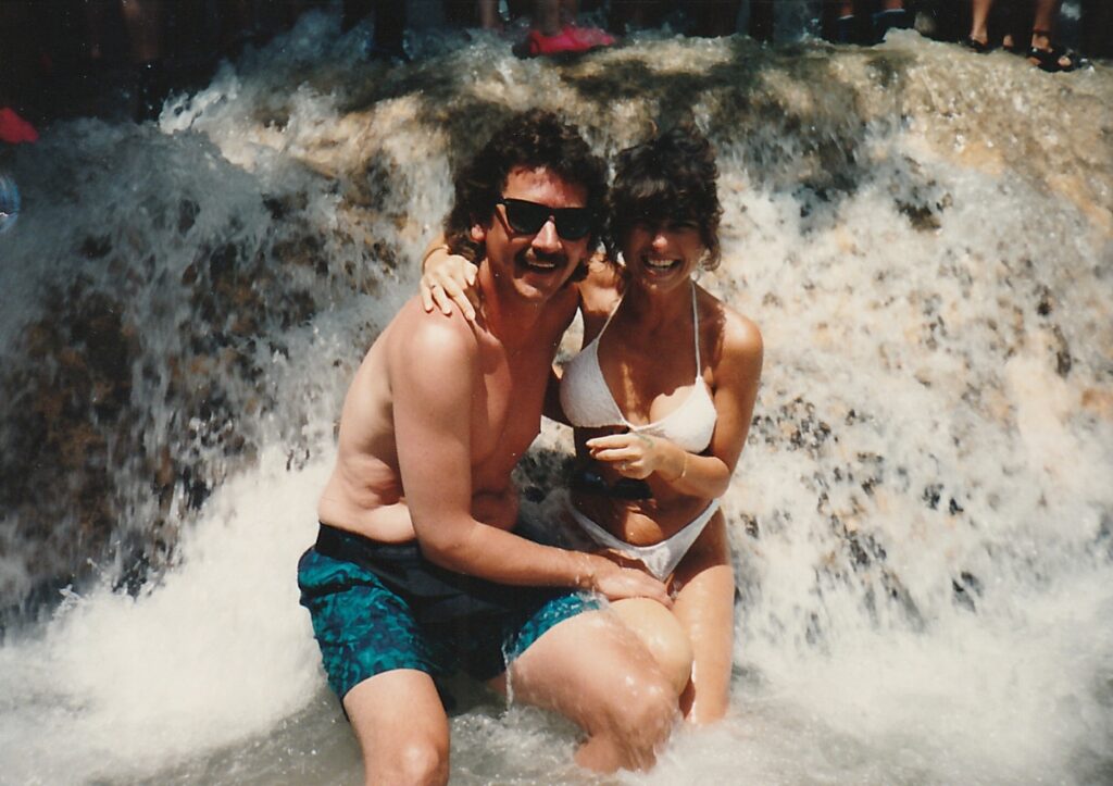 Climbing Jamaica's Dunn's River Falls during our honeymoon.