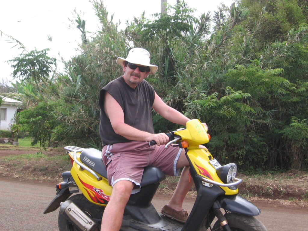 John trying look tough on a scooter.
