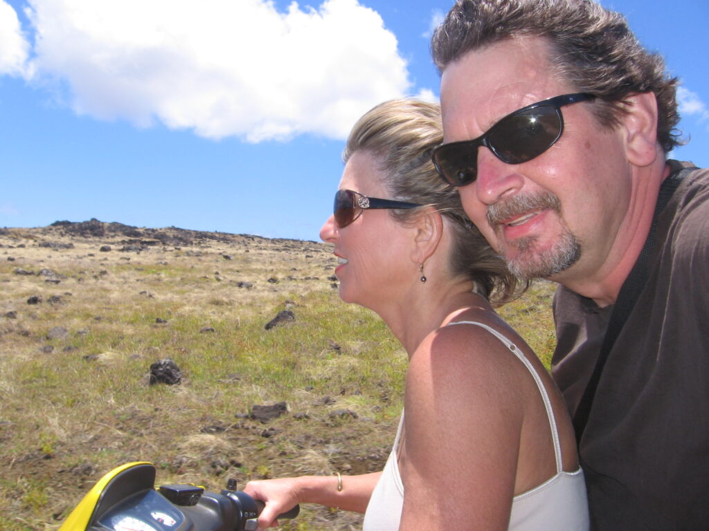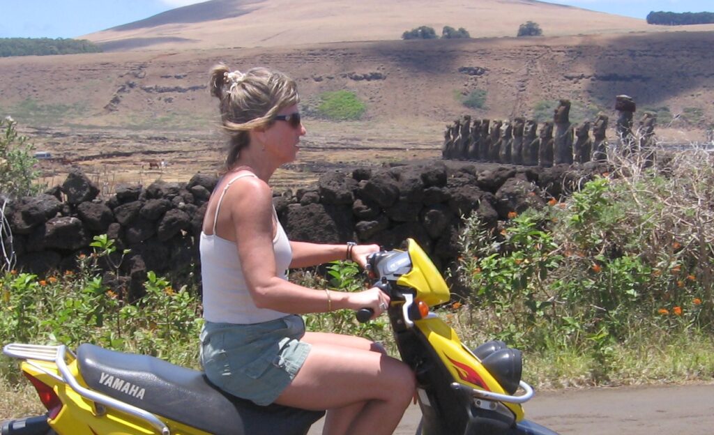 Ann cruises past the Ahu Tongariki.