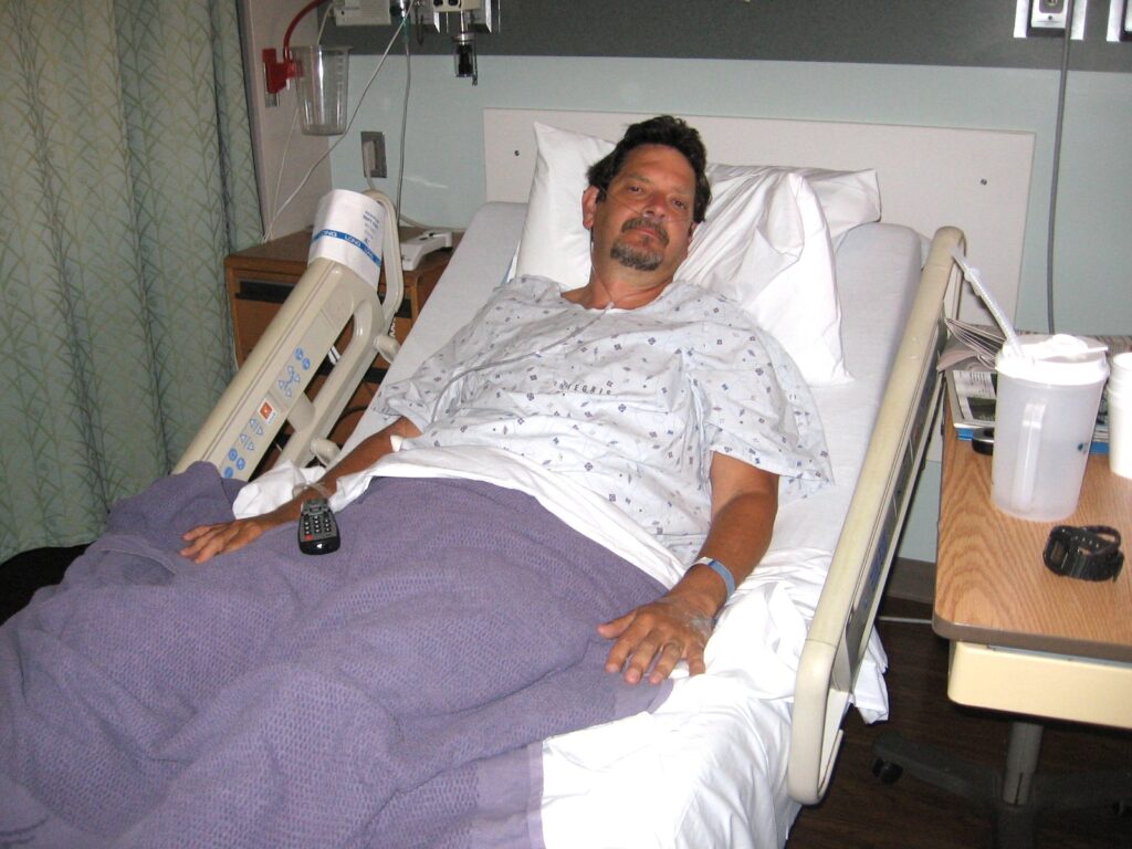 John at death's door in an Oklahoma City hospital.