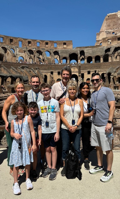 The whole crew inside the Roman Colosseum.