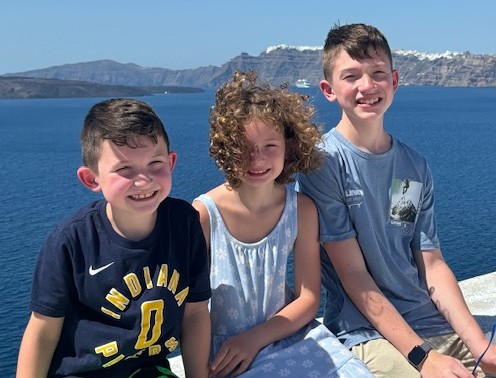 The grandkids - Harrison, Nora, and Cooper - in Santorini.