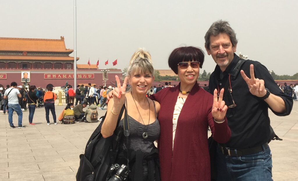Maintaining diplomatic relations with a local in Tiananmen Square.