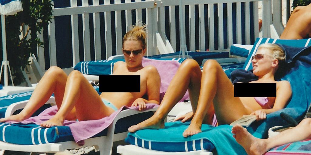 Topless woman on Nice beach is not happy with John.